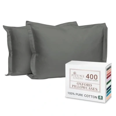 Pizuna 100% Cotton King Pillow Cases 2 Pack Dark Grey 50x90cm, 400 Thread Count Long Staple Combed Pillowcases, Luxurious Soft Sateen Size (100% Pillowcase of 2)
