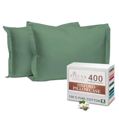 Pizuna 100% Cotton King Pillow Cases 2 Pack Hedge Green 50x90cm, 400 Thread Count Long Staple Combed Pillowcases, Luxurious Soft Sateen Size (Cotton Pillowcase of 2)