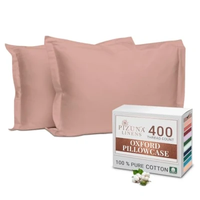 Pizuna 100% Cotton King Pillow Cases 2 Pack Misty Rose 50x90cm, 400 Thread Count Long Staple Combed Pillowcases, Luxurious Soft Sateen Size (Cotton Pillowcase of 2)
