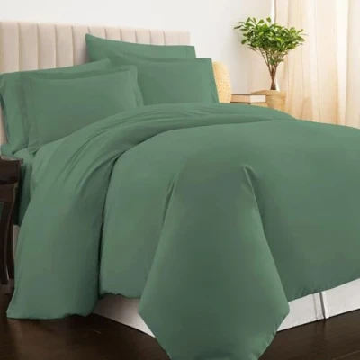 Pizuna 100% Cotton King Size Duvet Cover Sets Hedge Green, 400 Thread Count Long Staple 230x220cm, Sateen Weave Quilt with Button Closure (Kingsize Sets)