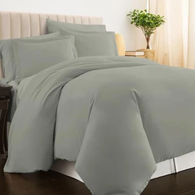 Pizuna 100% Cotton King Size Duvet Cover Sets Silver, 400 Thread Count Long Staple 230x220cm, Sateen Weave Quilt with Button Closure (Kingsize Sets)