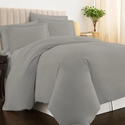 Pizuna 100% Cotton Single Duvet Cover Set Ash Grey, 400 Thread Count Long Staple 140x200cm, Soft Sateen Weave Quilt with Button Closure (Single Cover)