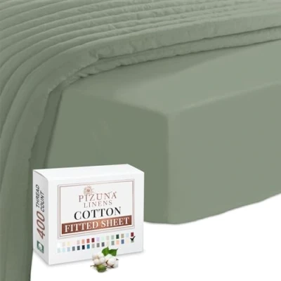 Pizuna 100% Cotton Small Double Fitted Sheet Sea Foam, 400 Thread Count Long Staple Sheets 120x200 cm, Sateen Weave 40 cm Deep 1 PC Foam