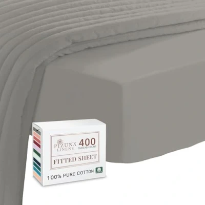 Pizuna 100% Cotton Small Single Fitted Sheet Ash Grey, 400 Thread Count Long Staple 80x200 cm, Sateen Weave 40 cm Deep Sheets 1 PC Grey