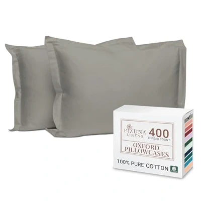 Pizuna 100% Cotton Standard Pillowcases 2 Pack Ash Grey 50x75cm, 400 Thread Count Long Staple Combed Soft Pillow Cover, Sateen Weave Oxford Cases (Cooling Pillowcase 2PC)
