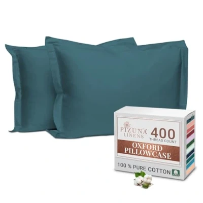 Pizuna 100% Cotton Standard Pillowcases 2 Pack Peacock Blue 50x75cm, 400 Thread Count Long Staple Combed Soft Pillow Cover, Sateen Weave Oxford Cases (Cooling Pillowcase 2PC)