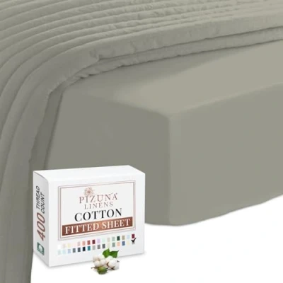 Pizuna 100% Cotton Super King Fitted Sheet Silver, 400 Thread Count Long Staple 180x200 cm, Sateen Weave Superking Extra Deep 40 cm Fit 1 PC