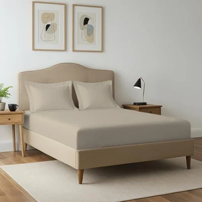Double Size Fitted Sheet & Pillowcases: This is a set of matching double-size fitted sheet & pillowcases. It includes 1 Double Size Fitted Sheet (140cm x 200cm) & 2 Standard Pillowcases (50 cm X 75 cm + 5cm) 3 Piece Double Bedding Set: Featuring a smart side tag on these Double Size Fitted Sheets with 40cm deep pockets for effortless placement. The patented stitching pattern ensures a comfortable 360-degree fit on mattresses 15cm to 40cm thick, preventing the sheets from popping off at night. Additionally, it includes 2 Standard Pillowcases with a 5cm Oxford frame that lends a grandeur look. 100% Pure & Natural Mercerized Combed Cotton: Made from Pizuna's fine yarn technique, this authentic 400 thread count bedding set features a single dent (4 up-1 down) sateen weave. Mercerized combed cotton make these fitted bed sheets double and pillow cases smooth and lightweight. Pure and natural cotton bedding wrinkles initially, but it softens with each wash and the wrinkling reduces. Pizuna Quality Standard: Rigorous inspections and piece by piece checks are conducted by the Quality Assurance Team at Pizuna. These bed sheets double fitted with pillow covers are OEKO-TEX & AZO Free Certified (2025), free from synthetic substances and planet-friendly, making it soothing even for the most delicate skin. Indulge Responsibly: These double bedding sets with fitted sheets are BSCI compliant, socially responsible and environment friendly. Use of recycled materials for packaging may add an unpleasant odour that disappears after the 1st wash in warm water. Featuring the Fade Resistant Dyes, it is machine washable on a gentle cycle and tumble dried low. Using bleach may affect the colours. Designed for Better Sleep: Our in-house sleep experts study the user’s sleep behaviour and patterns, resulting in product enhancement and compact packaging. Available globally in multiple colours and sizes, make these double bed sets with fitted sheet the perfect gifting option for your loved ones. Pizuna Cares: Thousands of happy families and media outlets have praised this cotton bedding set. However, if you're unhappy with the product, you can return it within 30 days, beyond that our customer care team will be there to assist you as well.