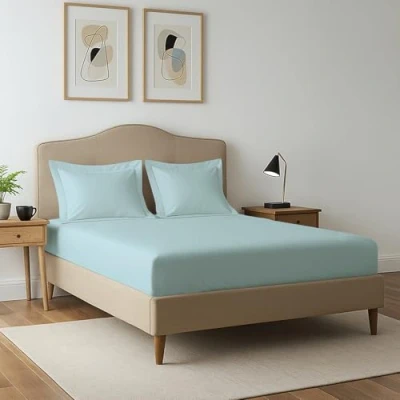 King Size Fitted Sheet & Pillowcases: This is a set of matching king size fitted sheet with pillowcases. It includes 1 King Size Fitted Sheet (160cm x 200cm) & 2 Standard Pillowcases (50 cm X 75 cm + 5cm) 3 Piece King Bedding Set: Featuring a smart side tag on these King Size Fitted Sheets with 40cm deep pockets for effortless placement. The patented stitching pattern ensures a comfortable 360-degree fit on mattresses 15cm to 40cm thick, preventing the sheets from popping off at night. Additionally, it includes 2 Standard Pillowcases with a 5cm Oxford frame that lends a grandeur look. 100% Pure & Natural Mercerized Combed Cotton: Made from Pizuna's fine yarn technique, this authentic 400 thread count bedding set features a single dent (4 up-1 down) sateen weave. Mercerized combed cotton make these king size fitted sheets and pillow case set smooth and lightweight. Pure and natural cotton bedding wrinkles initially, but it softens with each wash and the wrinkling reduces. Pizuna Quality Standard: Rigorous inspections and piece by piece checks are conducted by the Quality Assurance Team at Pizuna. This fitted sheet and pillowcase set is OEKO-TEX & AZO Free Certified (2025), free from synthetic substances and planet-friendly, making it soothing even for the most delicate skin. Indulge Responsibly: These king size bedding sets with fitted sheet is BSCI compliant, socially responsible and environment friendly. Use of recycled materials for packaging may add an unpleasant odour that disappears after the 1st wash in warm water. Featuring the Fade Resistant Dyes, it is machine washable on a gentle cycle and tumble dried low. Using bleach may affect the colours. Designed for Better Sleep: Our in-house sleep experts study the user’s sleep behaviour and patterns, resulting in product enhancement and compact packaging. Available globally in multiple colours and sizes, make these extra deep fitted sheets set the perfect gifting option for your loved ones. Pizuna Cares: Thousands of happy families and media outlets have praised this cotton bedding set. However, if you're unhappy with the product, you can return it within 30 days, beyond that our customer care team will be there to assist you as well.