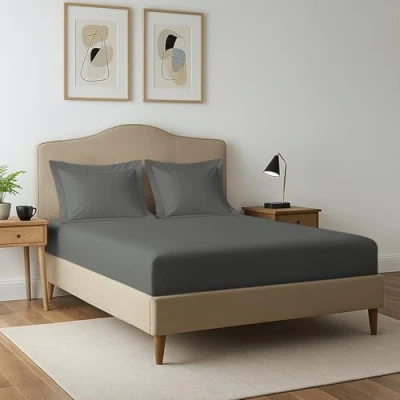 Pizuna 400 Thread Count Super King Fitted Sheet 180x200 cm with 2 Pillow Cases, Dark Grey, 100% Long Staple Cotton, Soft Sateen Weave, Bed Sheets 40 Deep Pocket