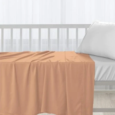 Pizuna Baby Flat Sheet for Crib 70 x 100 cm, Peach, 400 Thread Count 100% Long Staple Cotton Bed Sheet, Soft Sateen Weave with 5 cm Hem