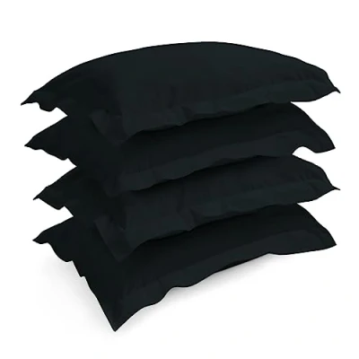 Pizuna Black Pillow Cases 4 pack Cotton, 400 Thread Count 100% Long Staple Combed Cotton of 4, Sateen Weave Oxford Case 50 x 75 cm (Cooling Pillowcases)