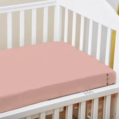 Pizuna Cot Fitted Sheet 70 x 140 cm, Misty Rose, 400 Thread Count 100% Long Staple Cotton Bed Sheet, Soft Sateen Weave Baby with 15 cm Deep Pocket