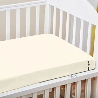 Pizuna Cot Fitted Sheet 70 x 140 cm, New Ivory, 400 Thread Count 100% Long Staple Cotton Bed Sheet, Soft Sateen Weave Baby with 15 cm Deep Pocket