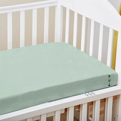 Pizuna Cot Fitted Sheet 70 x 140 cm, Sea Foam, 400 Thread Count 100% Long Staple Cotton Bed Sheet, Soft Sateen Weave Baby with 15 cm Deep Pocket