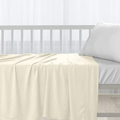 Pizuna Cotton Flat Crib Sheet Baby 70 X 100cm New Ivory, 1pc 400 Thread Count 100% Long Staple Combed Luxurious Sateen Weave Bed Sheets With Stylish 5cm Hem By