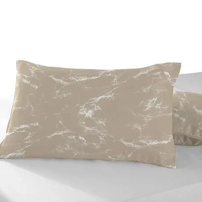 Pizuna Cotton Marble Taupe Printed Pillowcases 2 Pack 48x74, 400 Thread Count 100% Long Staple Pillow Cover, Sateen Standard Housewife PillowCase (Marble Cases Pack)