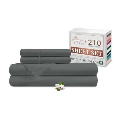 Pizuna Cotton Percale King Size Sheet Set Dark Grey, 100% Long Staple Combed Bedding 275x280 cm, Soft Sateen 4 PC Bed Fitted Sheet, Flat & 2 Pillowcases