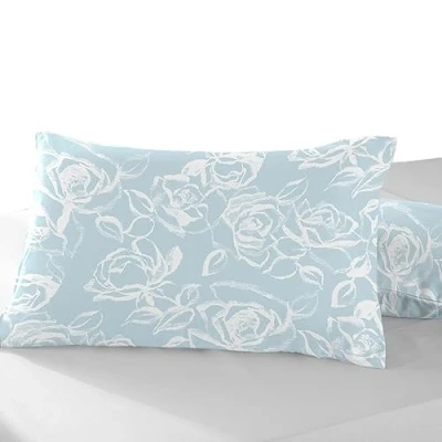 Pizuna Cotton Simply Floral Blue Printed Pillowcases 2 Pack 48x74, 400 Thread Count 100% Long Staple Pillow Cover, Sateen Standard Housewife PillowCase (Marble Cases Pack)