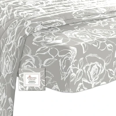 Pizuna Cotton Simply Floral Silver Print Single Fitted Sheet 1 Pc Only, 400 thread Count 100% Long Staple Sateen Printed Bed Sheets 90x200 of 40 cm Deep Pocket (Printed Sheet)
