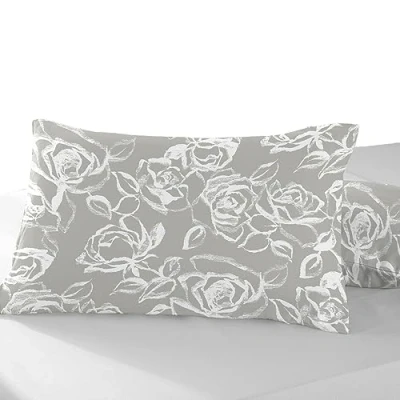 Pizuna Cotton Simply Floral Silver Printed Pillowcases 2 Pack 48x74, 400 Thread Count 100% Long Staple Pillow Cover, Sateen Standard Housewife PillowCase (Marble Cases Pack)