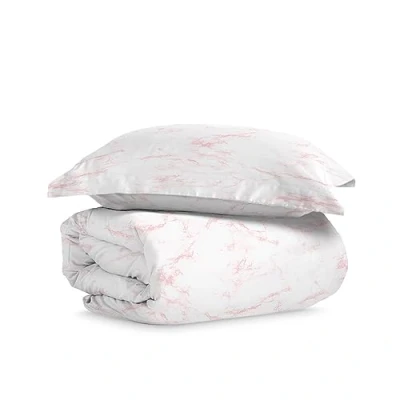 Pizuna Cotton Single Carrara Marble Pink Print Duvet 140x200, 400 Thread Count 100% Long Staple Quilt Cover with Button Closure