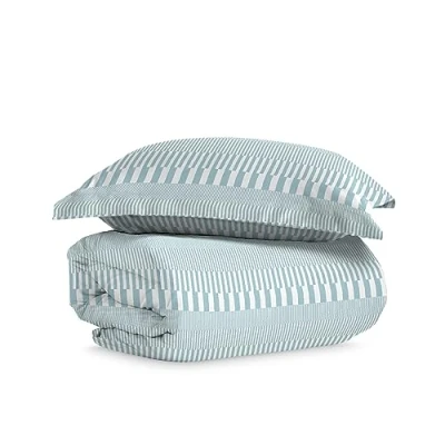 Pizuna Cotton Single Cascade Stripe Blue Print Duvet Cover 140x200, 400 Thread Count 100% Long Staple Set, Sateen Quilt with Button Closure (Printed Cover)