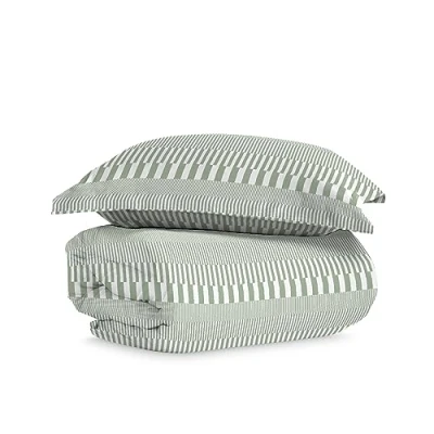 Pizuna Cotton Single Cascade Stripe Green Print Duvet Cover 140x200, 400 Thread Count 100% Long Staple Quilt with Button Closure