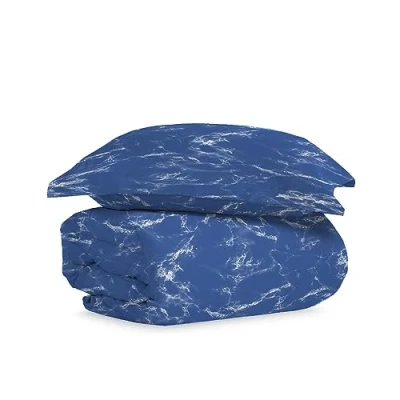 Pizuna Cotton Single Marble Blue Print Duvet Cover 140x200, 400 Thread Count 100% Long Staple Set, Sateen Quilt with Button Closure (Printed Cover)