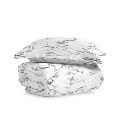 Pizuna Cotton Single Marble White Print Duvet Cover 140x200, 400 Thread Count 100% Long Staple Quilt with Button Closure