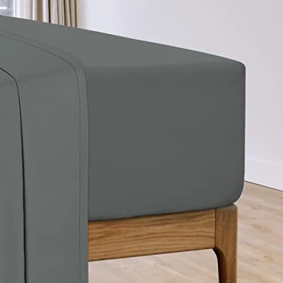 Pizuna Dark Grey Cotton Percale European Single Fitted Sheets 100x200 cm 1 Pc Only, 100% Long Staple Plain Weave Sheet Euro with 40 Deep Pocket (EU Sheet)