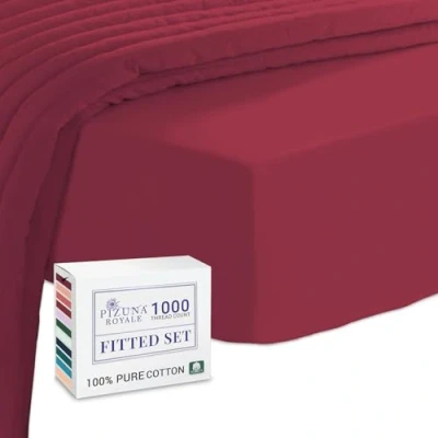 Pizuna Luxurious Cotton Double Fitted Sheet Rio Red, 1000 Thread Count 100% Long Staple Bed Sheets 140x200 cm, Sateen Weave Thick Extra Deep 40 cm Fit 1 PC