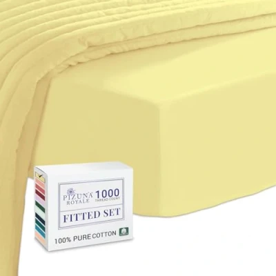Pizuna Luxurious Cotton Super King Fitted Sheet Mellow Yellow, 1000 Thread Count 100% Long Staple Superking 180x200 cm, Sateen Weave Thick Extra Deep 40 cm Fit 1 PC