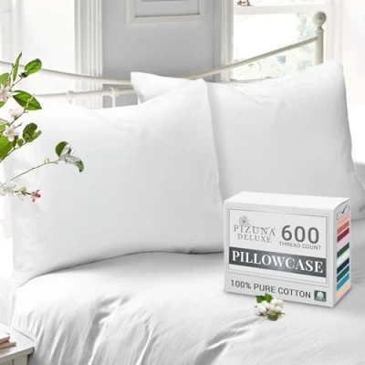 Cool, Breathable & Smooth: Woven using compacted yarn, this opulently thick 600 Thread Count Sateen Weave pillow case offers durability and breathability with its mid-weight texture. 100% Long-Staple Combed Cotton and minimal artificial processing provide a gentle touch on all skin types and a 5-star hotel sleep experience. Its moisture-wicking, sweat prevention and temperature controlling properties ensure a comfortable night's sleep while maintaining its premium look. 2 Housewife Pillowcases: This set includes 2 Housewife Pillowcases (48cm x 74cm) that lends a grandeur look and easy use. The excellent stitching reduces loose threads, giving a soft feel. 100% Pure & Natural Mercerised Combed Cotton: Crafted using Pizuna's fine yarn technique, this authentic 600 thread count pillow cover features a single-dent (4 up, 1 down) sateen weave. Use of mercerized combed cotton adds a smooth and soothing touch to the pillowcase. Natural & pure cotton wrinkles slightly, but it softens and the wrinkling reduces with every wash. Pizuna Quality Standard: Rigorous inspections and piece by piece checks are conducted by the Quality Assurance Team at Pizuna. This cotton pillowcase is OEKO-TEX Certified, free from chemicals, planet-friendly and certified AZO-free, making it soothing even for the most delicate skin. Indulge Responsibly: This cotton pillow case is BSCI compliant, socially responsible and environment friendly. Use of recycled materials for packaging may add an unpleasant odour that disappears after the 1st wash in warm water. Featuring the Fade Resistant Dyes, it is machine washable on a gentle cycle and tumble dried low. Using bleach may affect the colours. Designed for Better Sleep: Our in-house sleep experts study the user’s sleep behaviour and patterns, resulting in product enhancement and compact packaging. Available globally in multiple colours and sizes, make these pillowcase protectors the perfect gifting option for your loved ones. Pizuna Cares: Thousands of happy families and media outlets have praised this luxurious cooling pillow case. However, if you're unhappy with the product, you can return it for a full refund within 30 days, beyond that our customer care team will be there to assist you as well.