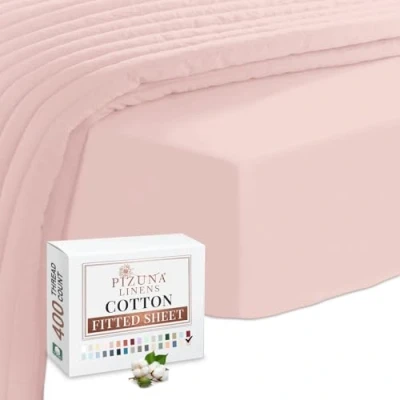 Pizuna Pure Combed Cotton Queen Fitted Sheet 160x200 cm Light Pink 400 Thread Count Cool Luxury Soft 100% Long Staple Sateen Weave 40cm Deep Pocket (1PC)
