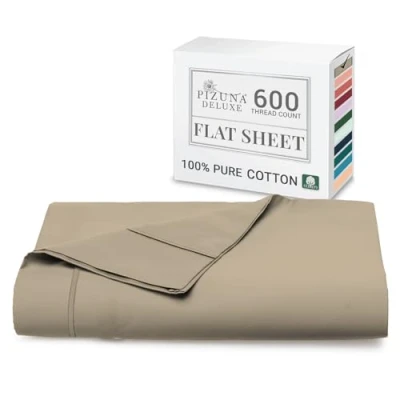 Pizuna Pure Combed Cotton Super King Flat Sheet Simply Taupe, 600 Thread Count Long Staple Brushed Sheets Size, Sateen Superking(Superking 1 PC)