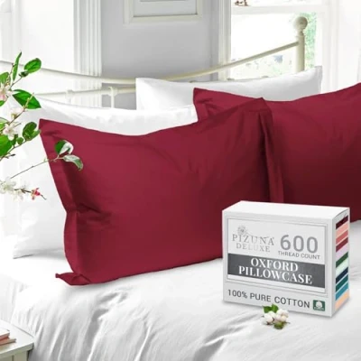 Pizuna Pure Cotton Standard Pillowcases 2 Pack Rio Red 50x75cm, 600 Thread Count Long Staple Combed Crisp Pillow Cover, Soft Sateen Oxford Cases (Cooling Pillowcase)