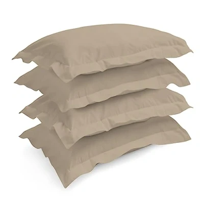 Pizuna Simply Taupe Pillow Cases 4 pack Cotton, 400 Thread Count 100% Long Staple Combed Cotton of 4, Sateen Weave Oxford Case 50 x 75 cm (Cooling Pillowcases)