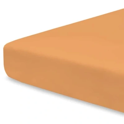 Pizuna Travel Cot Fitted Sheet 60 x 120 cm, Apricot Orange, 400 Thread Count 100% Long Staple Cotton Bed Sheet, Soft Sateen Weave with 15 cm Deep Pocket