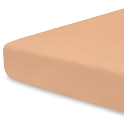 Pizuna Travel Cot Fitted Sheet 60 x 120 cm, Peach, 400 Thread Count 100% Long Staple Cotton Bed Sheet, Soft Sateen Weave with 15 cm Deep Pocket