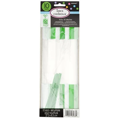 Package includes: 10 x Bags These Candy Bags feature kiwi green and white stripes with matching Twist Ties and measures 27.3cm x 8.3cm. Perfect for birthdays, showers, weddings, and many other occasions. The items are made from Top-Quality Food Safe Plastic Material., Manufacturer: amscan