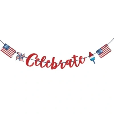 Celebrate the independence of the good ol' US of A in style with a selection of stars & stripes decorations and tableware. Decorate your 4th July party with this glitter banner. Length: 3.65m, Manufacturer: amscan