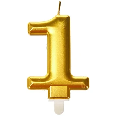 Make a wish before one blow out a golden number 1 birthday candle on birthdaynone this metallic gold number candle features a metallic coating it's a festive addition to any cake whether you're celebrating a gold-themed birthday or anniversary Each candle measures 75 cm tall Celebrate any age, milestone birthday or anniversary with our elegant sparkling celebration cake candles This product has metallic gold coating for that elegant and luxurious look, Manufacturer: Amscan