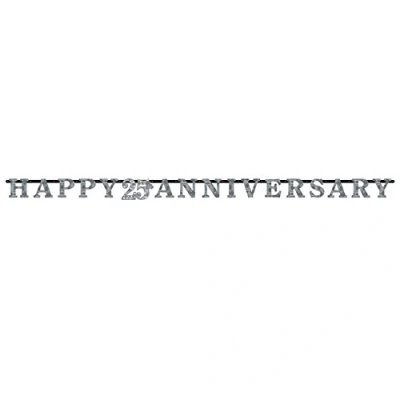 Package includes: 1 x Banner 3m x 17cm. Product features alternating letter banners that read "Happy 25th Anniversary" in silver to add elegance to your memorable celebrations. Ideal for 50th Anniversaries. Made of high quality cardstock., Manufacturer: amscan
