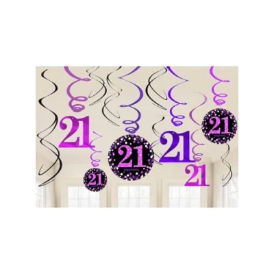 (PKT) Adult Pink Celebration 21st Birthday Swirl Decorations