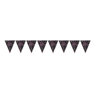 Add a touch of sparkle to their birthday with our pink sparkling celebration party range Pennant bunting with a 'Happy Birthday' message Length: 4 m Great for walls, windows, or doorways Material: Plastic