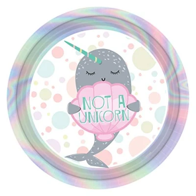Iridescent party plates featuring a super-cute narwal and a 'Not a Unicorn' message. Material: Paper Size: 23cm Pack of 8
