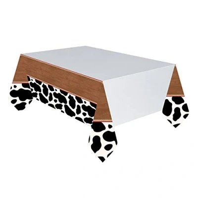 Package includes: 1 x tablecover 1.37m x 2.6m Product features a rustic wood print trimmed with rope and a black and white cow pattern on the sides. Perfect for birthdays, anniversaries and many other events. Made of plastic, Manufacturer: Amscan