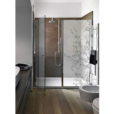 Ideal for decorating and personalising shower wall or any glass surface Easy to apply and remove, resistant to moisture, splashes of water and cleaning Made and designed in France Decorative adhesive printed in high definition with safe, solvent-free inks, an economical, elegant and original alternative to etched glass Easily adjustable to the required size by simply cutting with scissors.