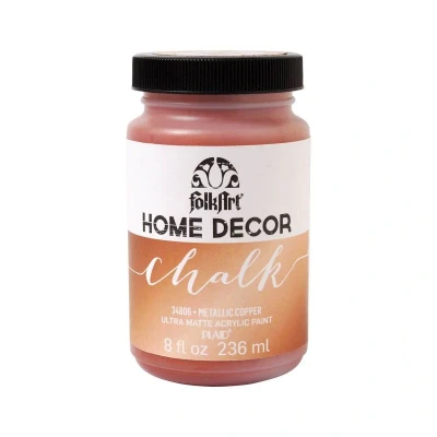 FolkArt Home Decor Chalk - Metallic Copper, 8 oz. FolkArt Home Decor Chalk is an ultra-matte chalk finish acrylic paint that requires minimal surface prep, is easy to distress and can be layered and sanded to give you a perfect aged look and feel. FolkArt Home Decor Chalk is great for furniture, cabinets, walls, decorative glass, metal and more. NP1217 24886 PE34806 PE34806 MPN 24886